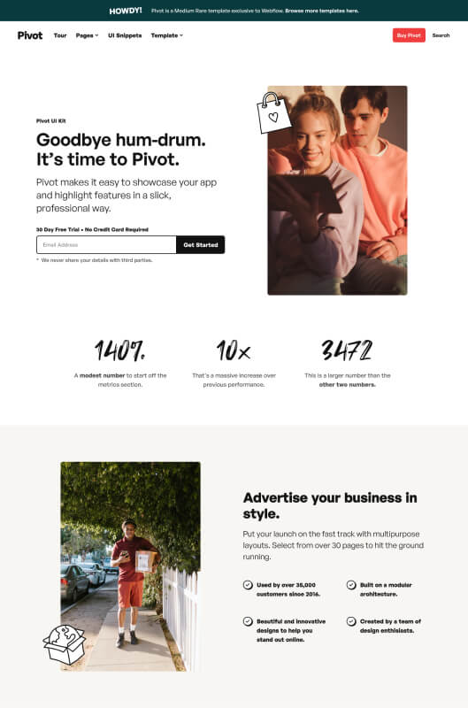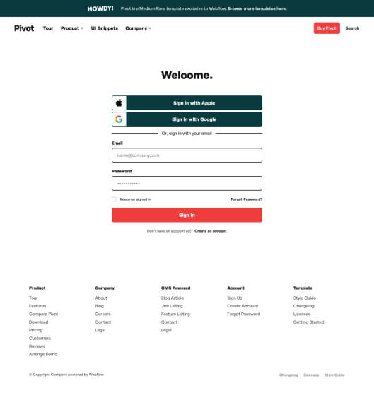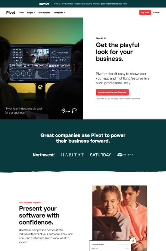 Pivot is a Medium Rare template exclusive to Webflow.