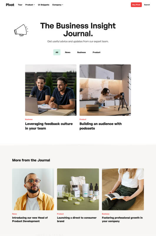 Easily adapt components and global styles to your brand with Pivot’s central style guide.